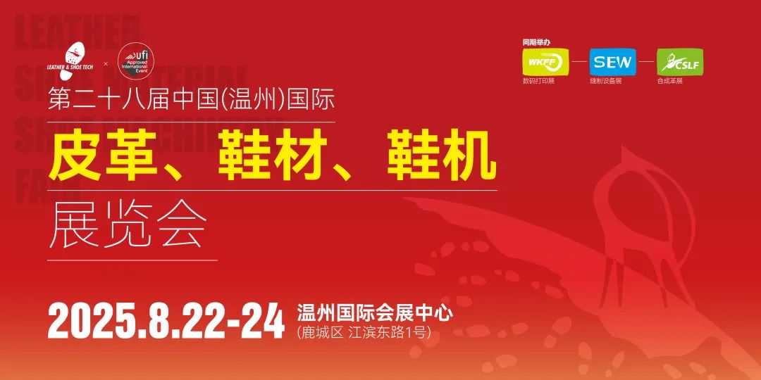 2025年8月22-24日,第二十八届中国(温州)国际皮革、鞋材、鞋机展览会将在温州国际会展中心举行,同期举办“中国国际合成革展览会”、“中国(温州)国际缝制设备展览会”、“中国(温州)国际数码打印展览会”(统称‘温州皮革鞋材鞋机展’)。展会依托区域产业链优势,深度融合浙、闽、粤等地鞋革产业链上下游资源,汇聚鞋革智能制造优质资源,持续推动鞋革产业向数字化、智能化、信息化和柔性化转型发展!